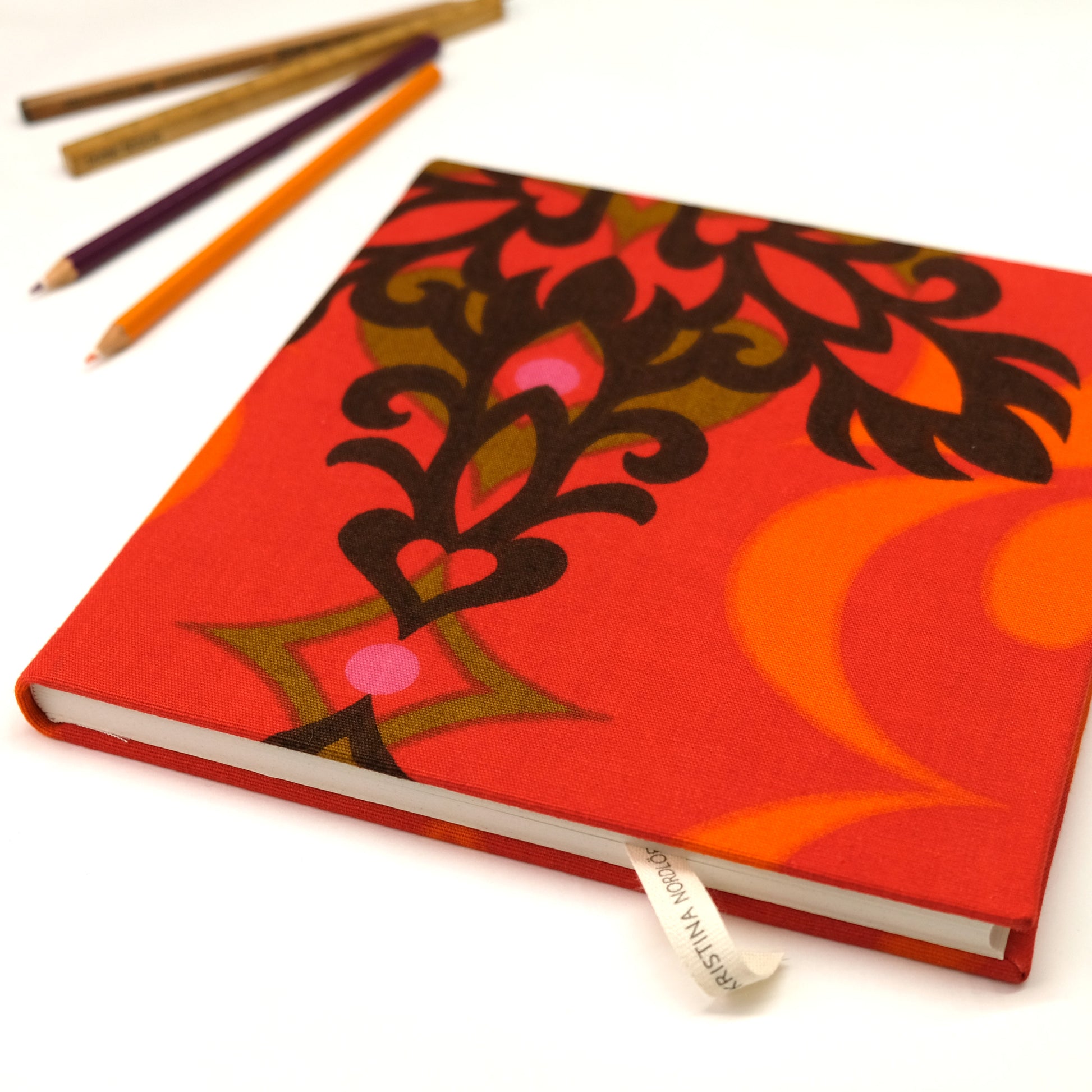 Kristina Nordlöf Journals/Sketchbooks are handbound with a sturdy, printed cotton or linen fabric cover. It’s either a Kristina Nordlöf original design or a Scandinavian vintage fabric from her personal collection.