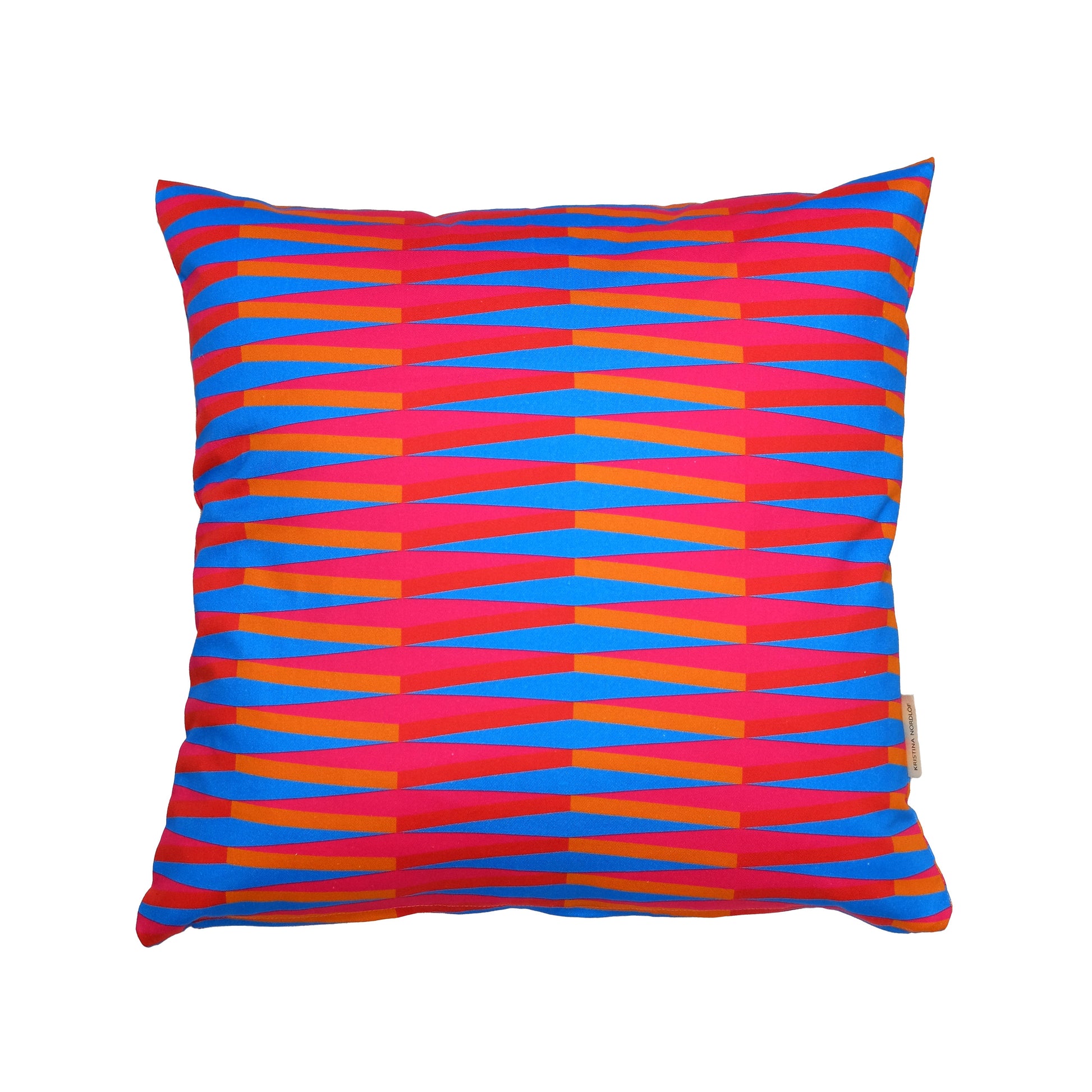 Printed cushion cover (50 x 50 cm) made from a heavyweight, soft 100% organic cotton. The expressive, geometric pattern in fuchsia, red, orange, and blue will bring a bold graphic look to your home, no doubt.